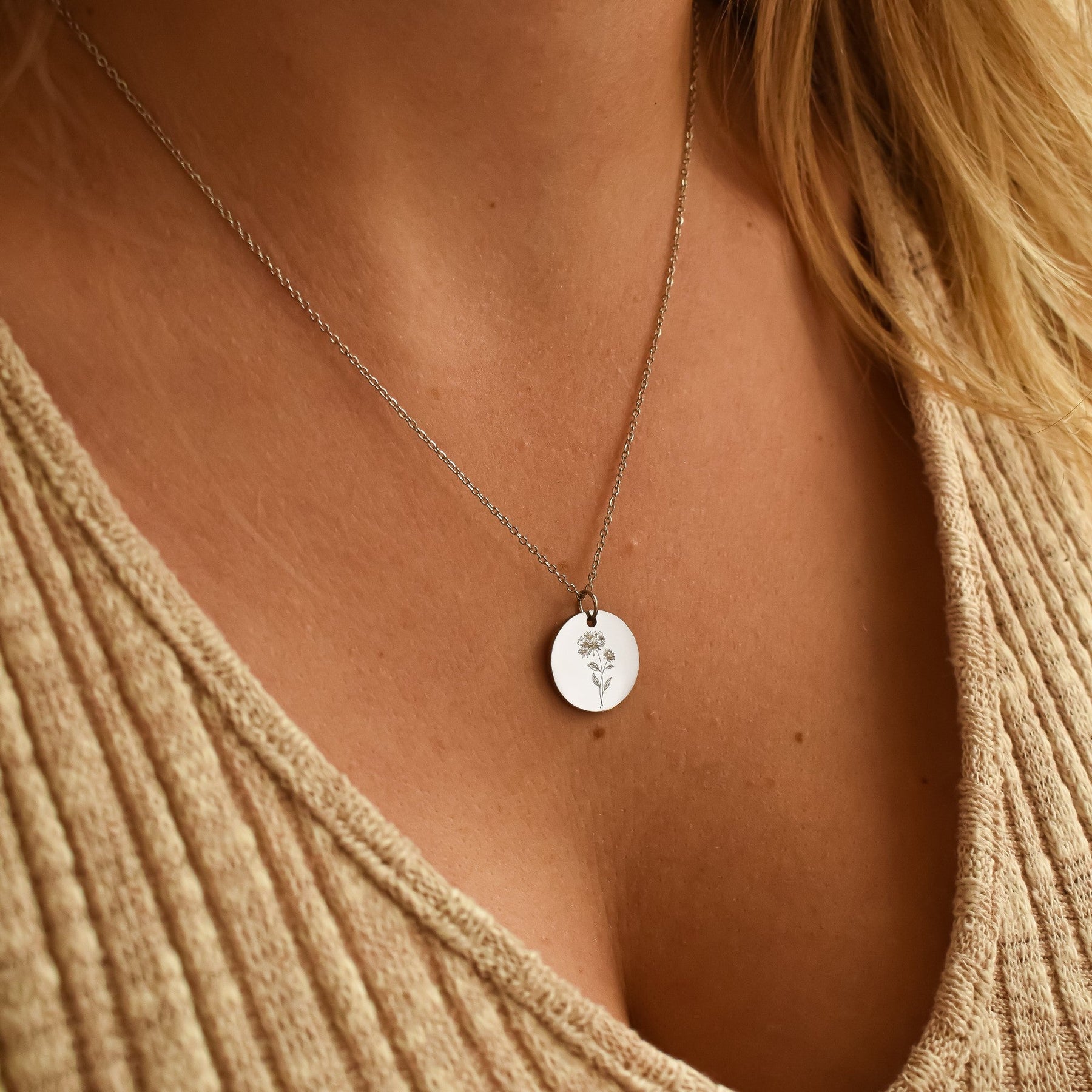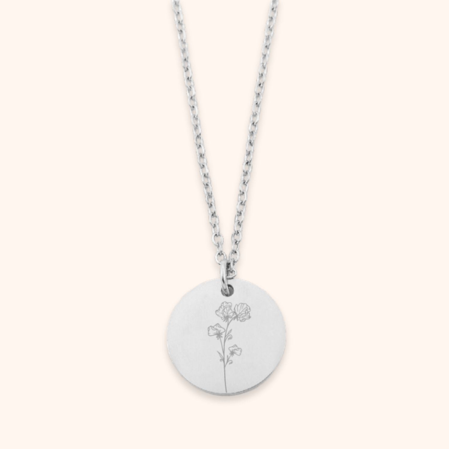 Lindo colar personalizado com flor de nascimento. Você pode personalizar seu colar com 1 flor de nascimento à sua escolha. Há também a opção de gravar a parte de trás. Isso pode ser feito com 1 ou 2 nomes, um texto ou outra flor de nascimento à sua escolha.