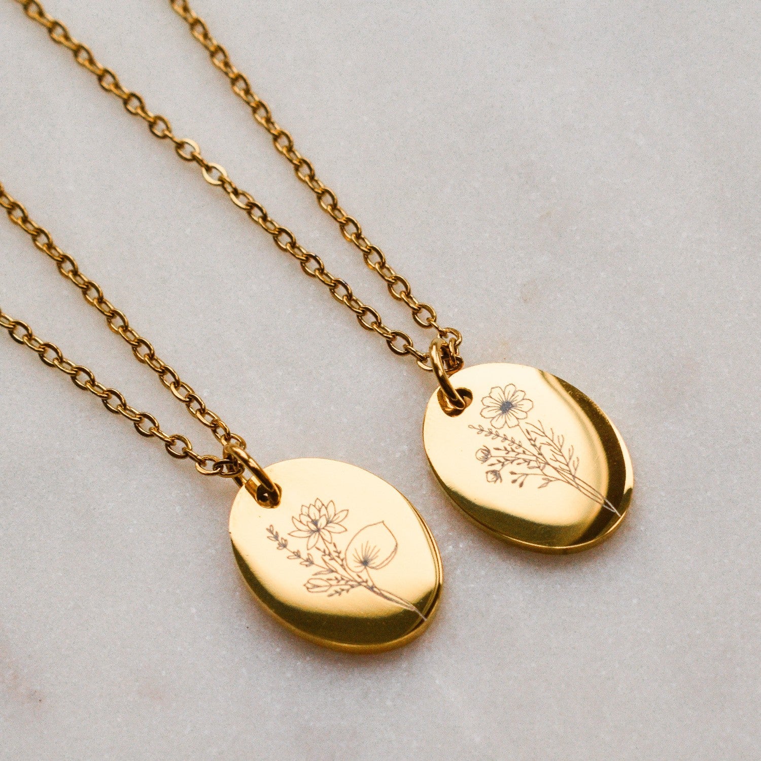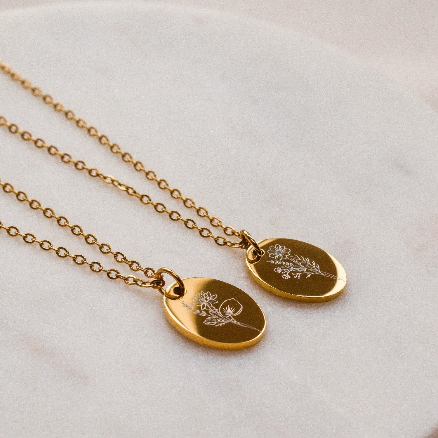 Você pode personalizar seu colar com 1 flor de nascimento à sua escolha. Há também a opção de gravar a parte de trás. Isso pode ser feito com 1 ou 2 nomes/datas, um texto ou outra flor de nascimento à sua escolha.