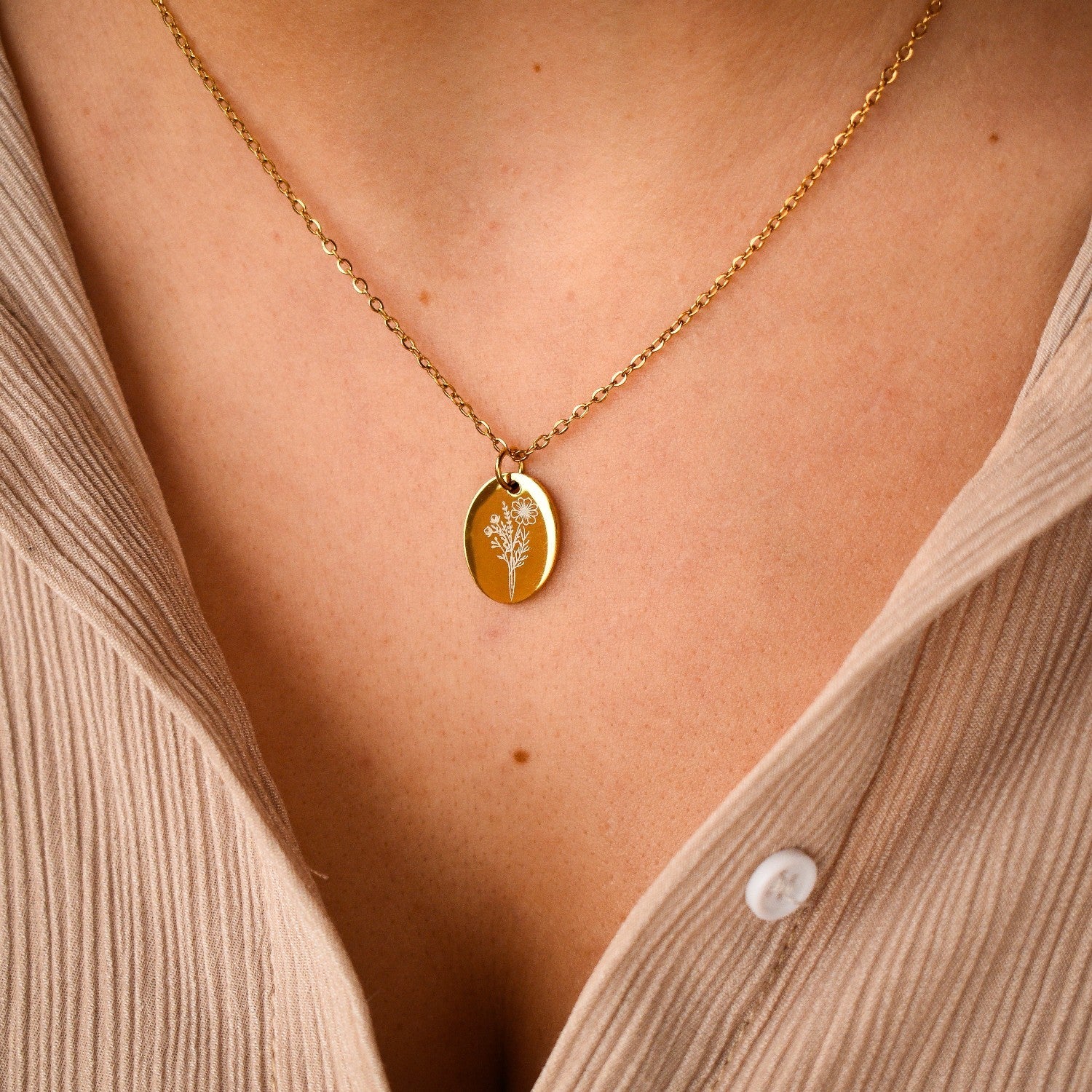 Colar com pingente oval em forma de flor de nascimento